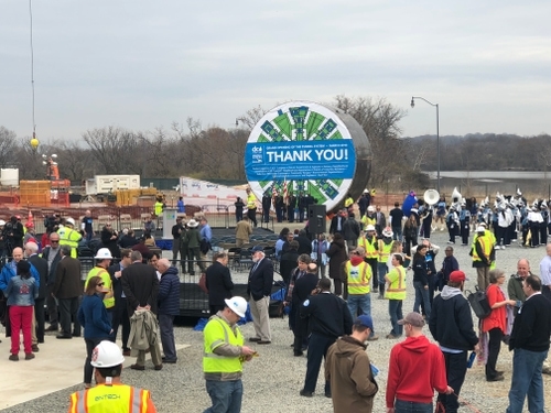 On March 22, 2018, Delon Hampton & Associates attended the Grand Opening of DC Water's Clean River Tunnel's System. DC Water's Clean Rivers Project is celebrating the commissioning of the first phase of the Anacostia River Tunnel System. The tunnel, which is 23 feet inside diameter and more than 7 miles long, holds more than 100 million gallons and is designed to reduce combined sewer overflows to the Anacostia by approximately 80%. The project also includes a new 225 million gallon per day Wet Weather Treatment Facility at Blue Plains.